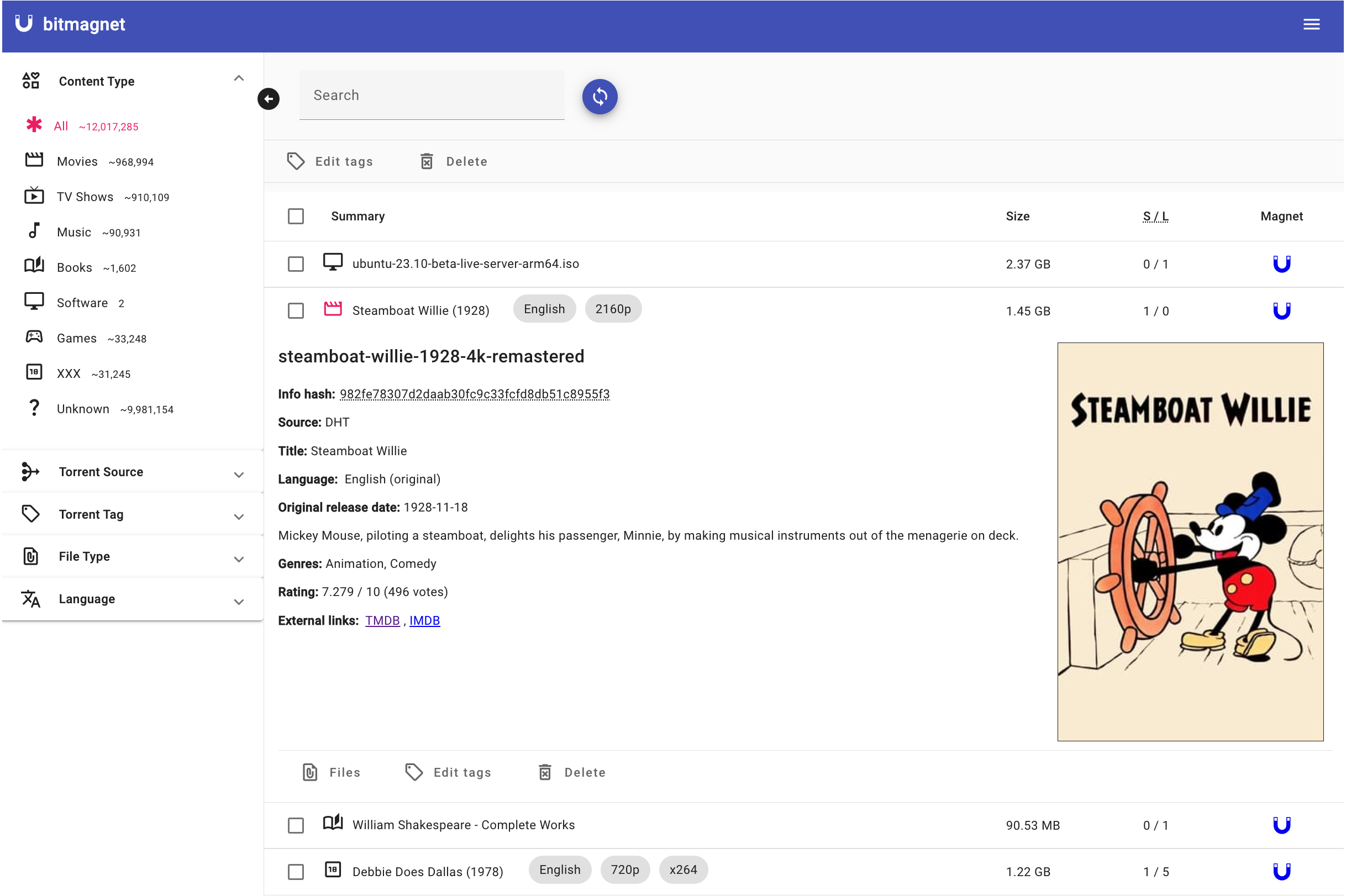 一个通用的 BitTorrent 索引器:bitmagnet 可以索引来自任何来源的种子,不仅限于 DHT 网络——目前这仅可通过