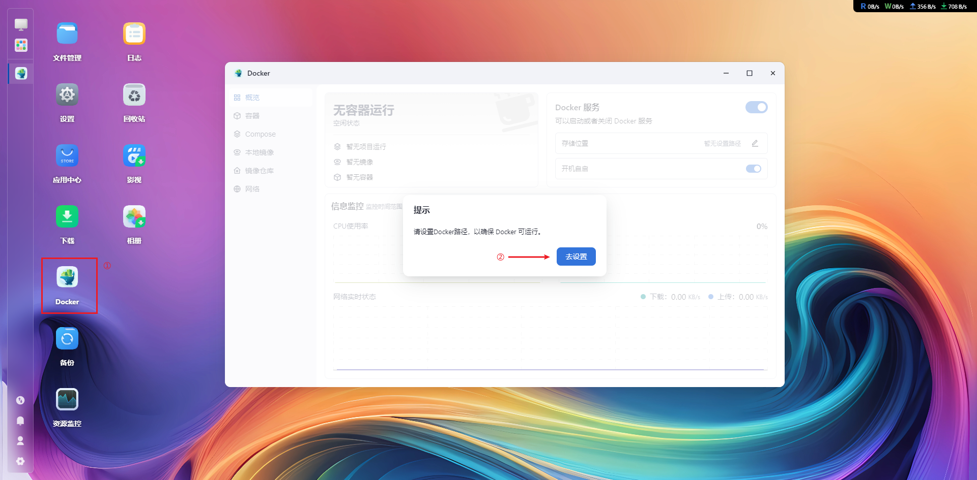 建议尽快创建存储空间以便上传文件和安装应用。如果硬盘还没有准备好,也可以点击 稍后 跳过,后续可从 设置 > 存储空间管理 中创建。