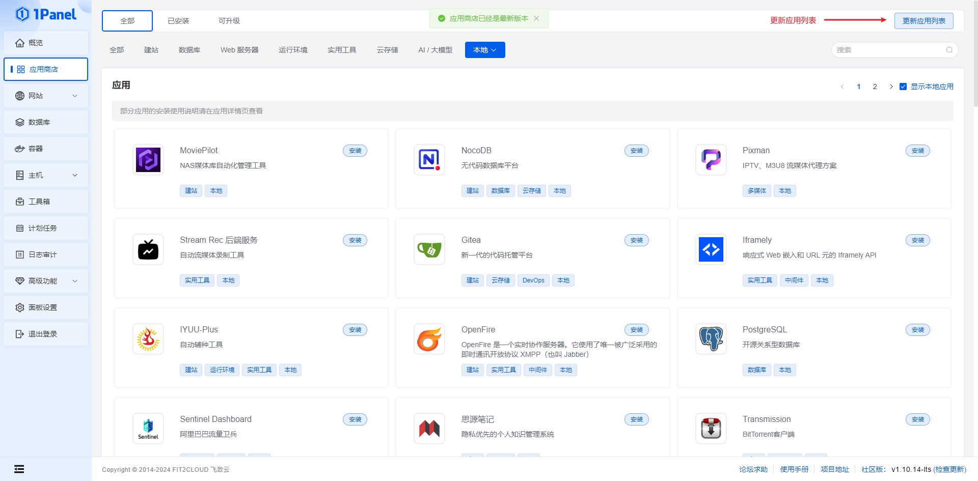 到这里 1Panel 的安装就完成了,注意查看日志,外网地址,内网地址,面板用户,面板密码