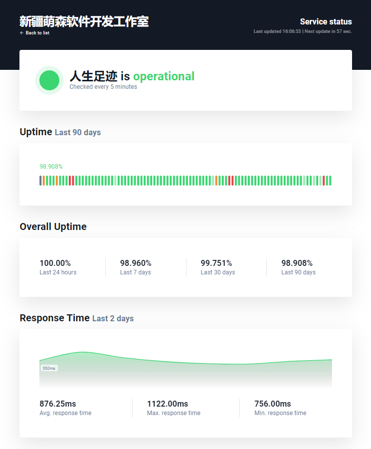 🟢 仅支持 1个 基础状态页面